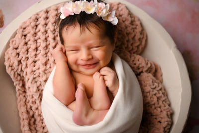 Nous commençons par les photos de famille. Vos regards tendres, les sourires en coin, les petites larmes parfois, la fierté aussi… Toutes ses émotions à figer qui montreront plus tard à quel point vous avez accueilli cet enfant avec amour ! Ensuite je me consacrerai à votre petite merveille en la mettant en scène dans différents contenants, avec différents accessoires en allant crescendo dans les poses que je lui ferai prendre.